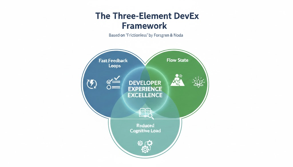 The Three-Element Framework - Fast feedback loops, protected flow state, and reduced cognitive load are the three levers for improving developer experience.